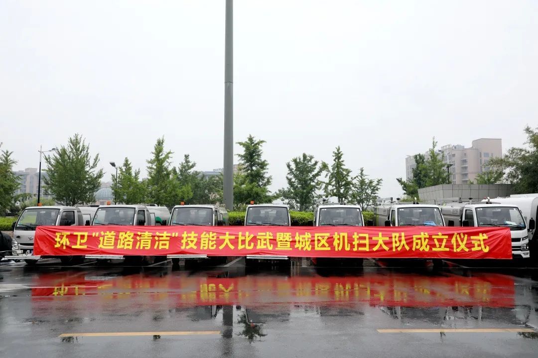 將同等質量的落葉、泥沙等混合垃圾撒在指定路段,然后由參賽的4組機掃分組按抽簽順序分批開展環衛“道路清潔”技能比武。