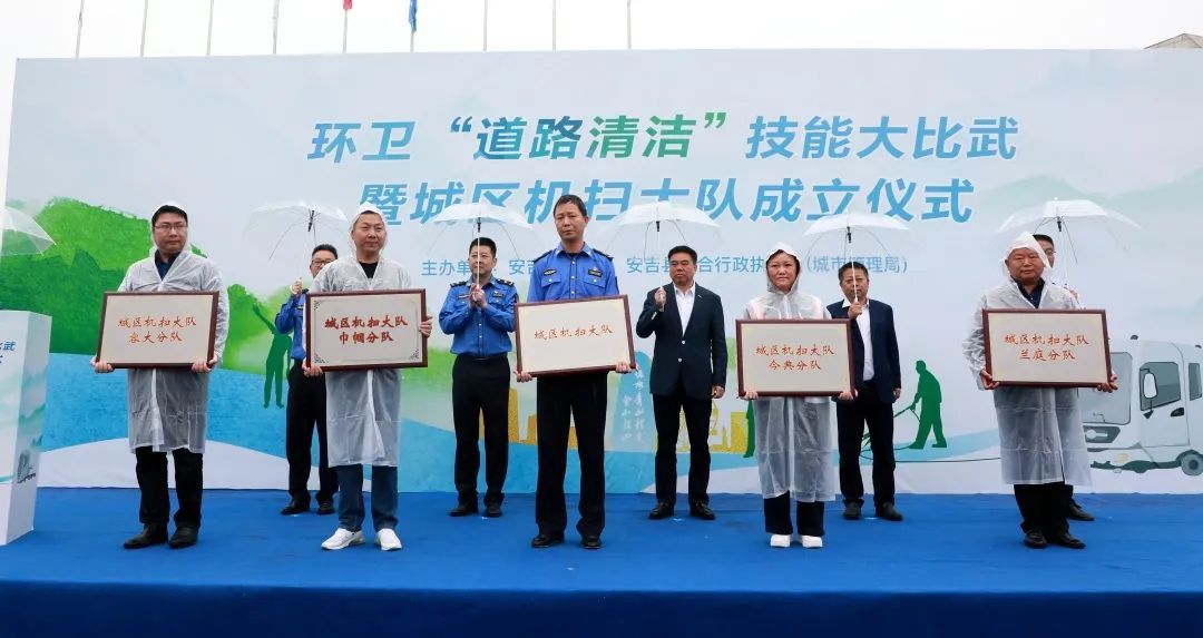 2022年5月20日上午,安吉縣環衛“道路清潔”技能大比武暨城區機掃大隊成立儀式在龍山體育中心舉行??h人大常委會副主任、縣總工會主席王一明,縣總工會黨組書記、常務副主席朱車生,縣綜合執法局黨委書記、局長章熙翔,縣綜合執法局黨委副書記、副局長張惠紅,縣總工會黨組成員、副主席閻德順,縣綜合執法局黨委委員李斌出席,各鄉鎮(街道)分管領導,各產業系統工會負責人,遞鋪環衛所以及各物業公司機掃分隊代表參加活動。
